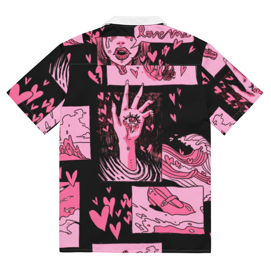 Unisex Love Me Graphic Novel Camp Collar shirt (Black)