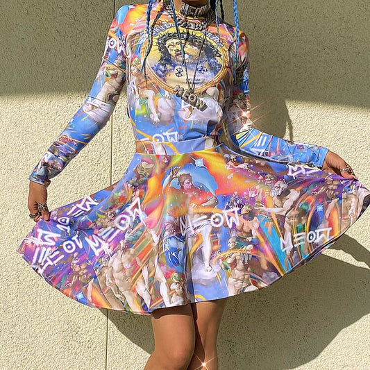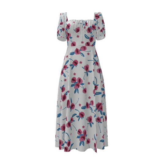 Lady of the Night Puff Shoulder Side Slit Long Dress