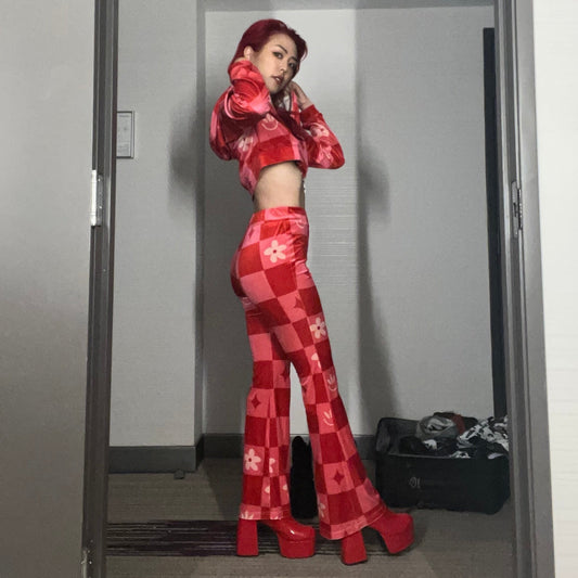 Kiss Me Women's Velvet Zip Up Crop Hoodie