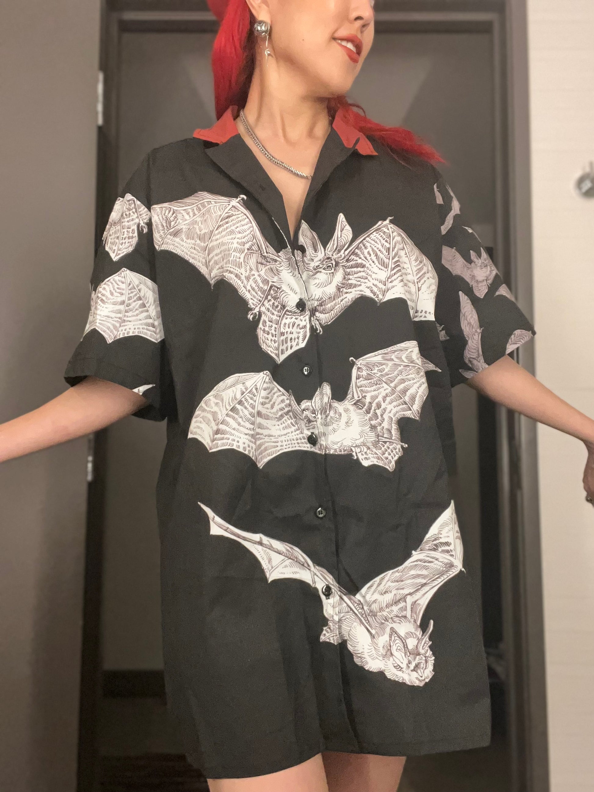 Bat Omen Hawaiian Camp Collar Shirt (Cotton)