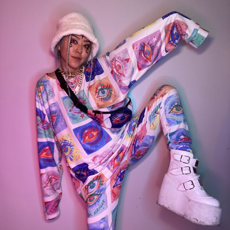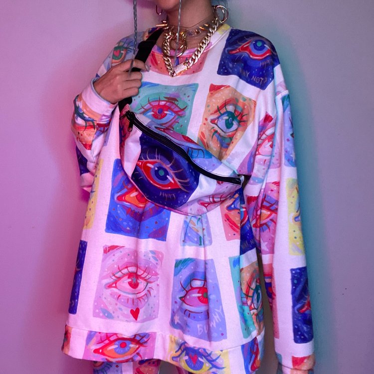 Hannah: 5’5”, usually wears size S. Wearing 3XL for the oversized look.