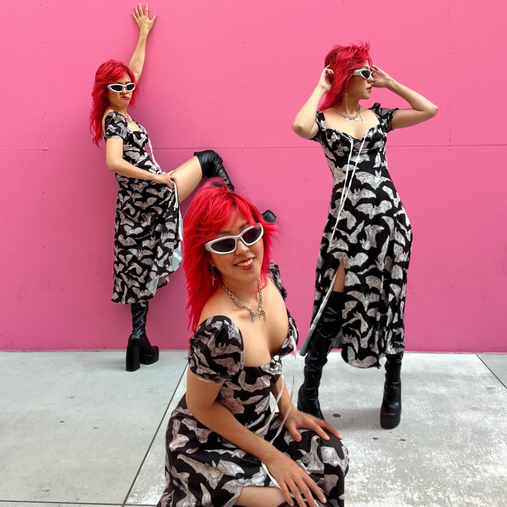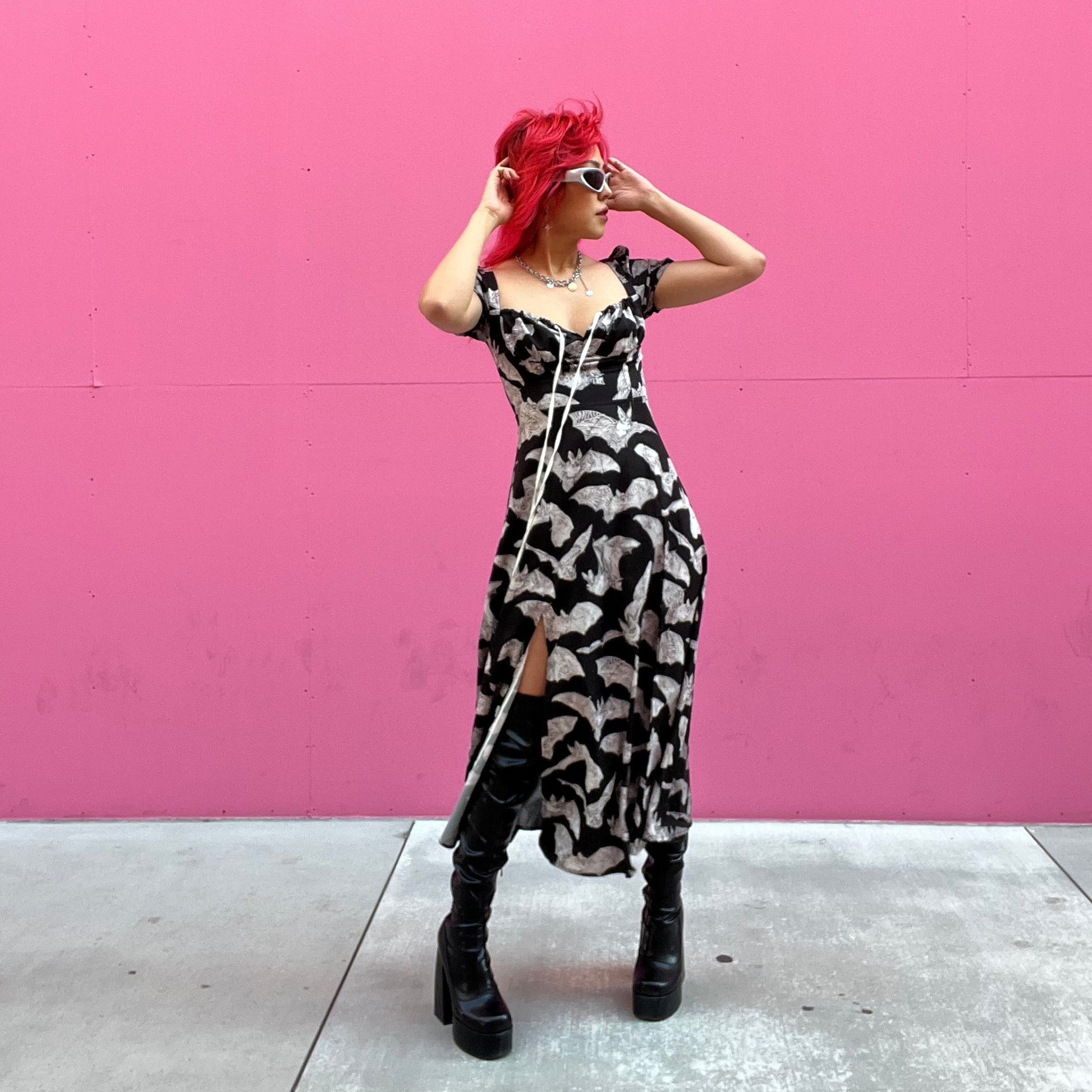 Lady of the Night Puff Shoulder Side Slit Long Dress