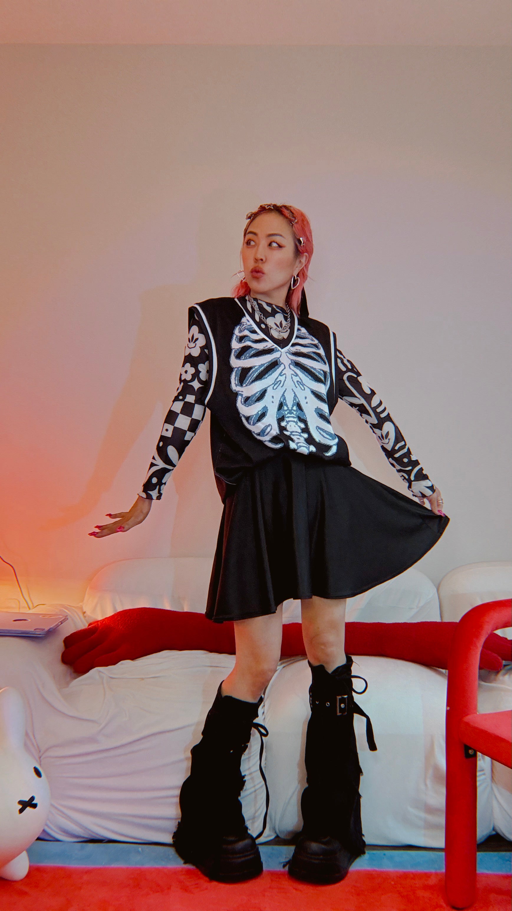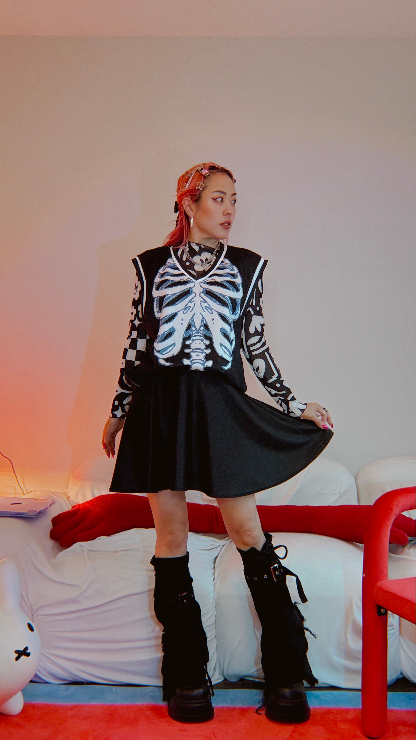 Mr. Skelly Boi Men’s Knitted V-neck Vest Black