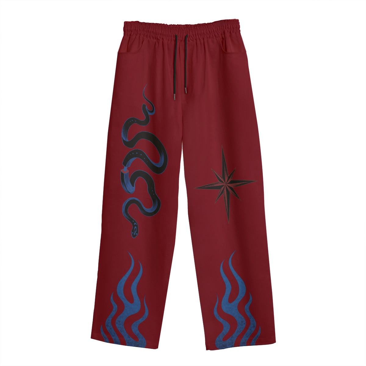 Wide leg trousers with natural droop, made of natural fiber fabric, comfortable and breathable; The elastic belt at the waist can be adjusted freely.